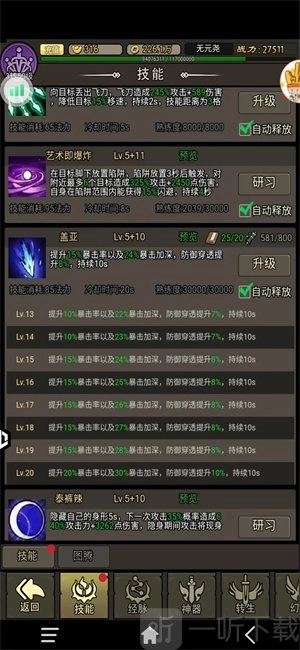 技能被划分为五个阶段,分别对应1-5级、5-10级、10-15级、15-19级以及20级,每个阶段的跨越都会带来一次显著的能力提升。其中,一技能的满级等级为5级,而其他技能的满级等级均为10级,满级之后,技能的进一步提升只能通过装备来实现。