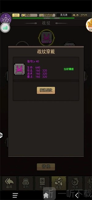 4、战纹系统:这是快速提升战力的关键途径,需通过挑战通天塔获取;每层挑战限时两分钟,超时即判定失败,因此核心策略是提升伤害输出以通关;前期建议优先强化强攻、杀戮、爆发这三类战纹。