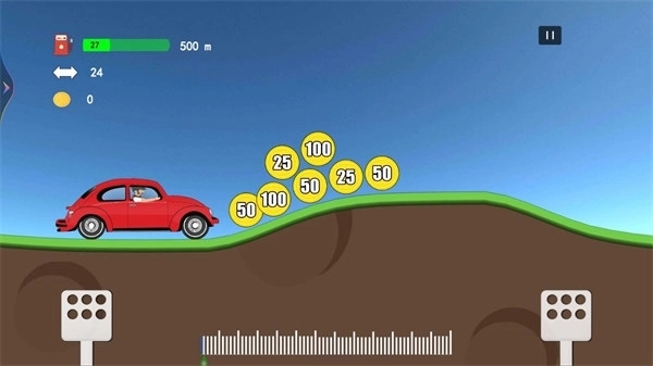 山地登山赛车手机版是一款竞技类游戏,玩家需驾驶车辆闯关,收集关卡内的金币与燃油,使车辆顺利抵达终点获取金币奖励。游戏中设有大量坑洼与颠簸路段,玩家需掌控好速度;一旦燃油不足,车辆便无法前行,因此要时刻留意燃油余量,以最快速度完成挑战。随着关卡推进,难度会不断提升,玩家需具备良好的应对能力。该游戏采用横屏设计,需要双手配合来操控车辆。