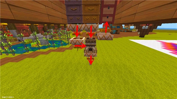 3、放置漏斗+熔炉(如图)注意放置位置: