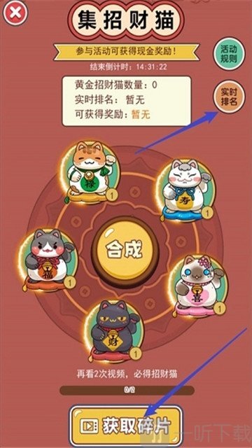 4. 除了常规玩法,还设有幸运猫活动,玩家收集五个指定物品后,可按一定比例进行合成并分配股息。
