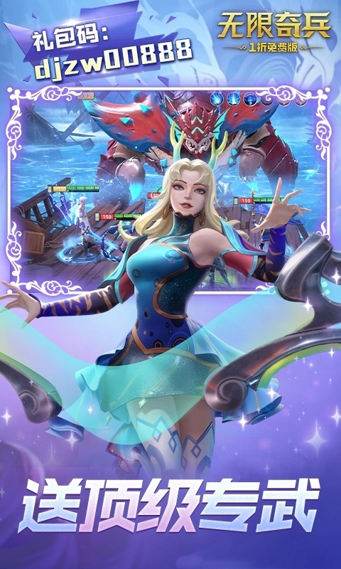 《无限奇兵降临0.1折》是一款以西方魔幻世界为背景的放置卡牌RPG手游,以其令人心动的0.1折超低折扣和海量奇兵收集为核心卖点。游戏构建了一个由人类、精灵、兽人、亡灵、天使、恶魔等多种族共存的大陆,玩家将扮演一名指挥官,通过召唤之门招募各路奇兵英雄,组建自己的远征军团,对抗入侵的黑暗势力。所谓的“0.1折”,是指游戏内几乎所有充值项目均以原价0.1折的超低价出售,让零氪和微氪玩家也能轻松组建全神话阵容。游戏融合了轻松放置的玩法、深度策略的阵容搭配和丰富的养成系统,带你开启一段充满奇幻色彩的冒险之旅。