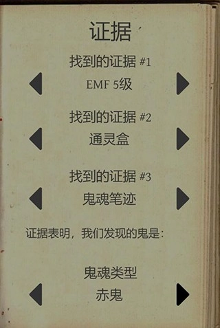 通过各种道具获得关于鬼魂的证据,然后在手册(J键)最后一页记下证据并判断鬼的类别。