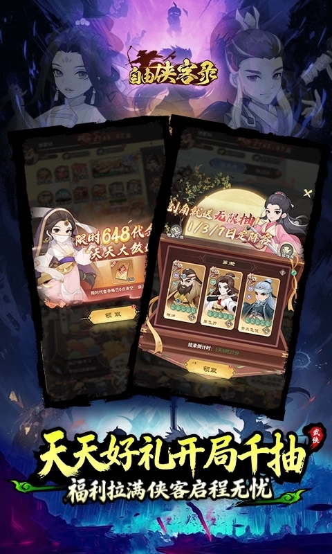 《自由侠客录0.1折》是一款以武侠世界为背景的开放世界RPG手游,以其令人心动的0.1折超低折扣和自由侠客收集为核心卖点。游戏构建了一个江湖纷争、门派林立的宏大世界,玩家将扮演一名初入江湖的侠客,通过历练江湖、结交侠客、修炼武学、挑战高手,逐步成为名动一方的武林盟主。所谓的“0.1折”,是指游戏内几乎所有充值项目均以原价0.1折的超低价出售,让零氪和微氪玩家也能轻松收集全江湖侠客。精美的国风画面、开放世界探索、深度策略的阵容搭配,带你体验快意恩仇的江湖人生。